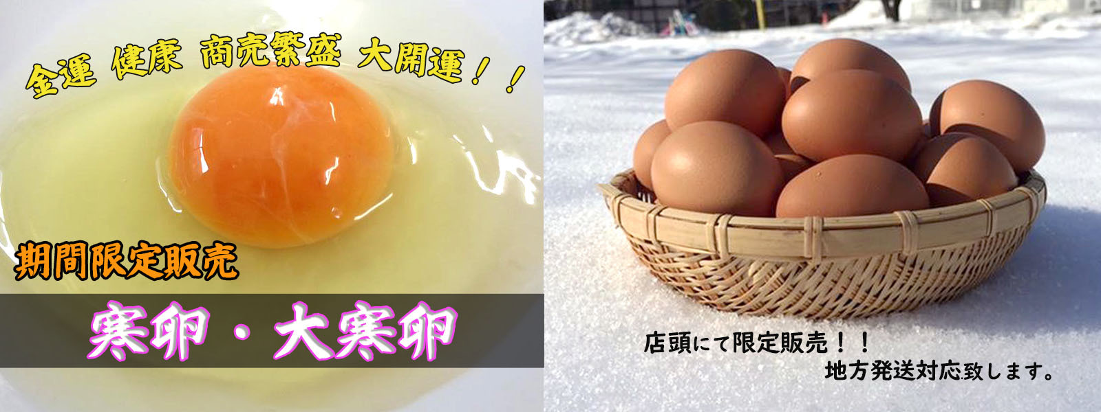 1/5 から 2/3 まで寒中期間には寒中卵が 1/20 の大寒には大寒卵をこの時期だけ特別に販売致します。